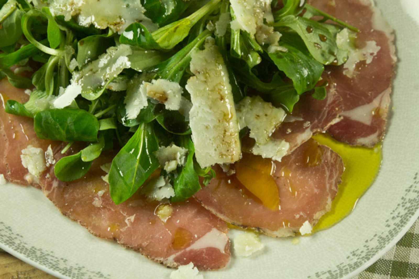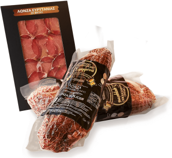 Μια “σαλάτα αρτιζανάλ Ελληνικών προϊόντων” με βάση την εκλεκτή λόνζα του Στρεμμένου απ’ την Ευρυτανία, πλαισιωμένη με αρσενικό Νάξου, άγρια ρόκα και βαλεριάνα και βινεγκρέτ από παλαιωμένο ξίδι και παρθένο ελαιόλαδο.